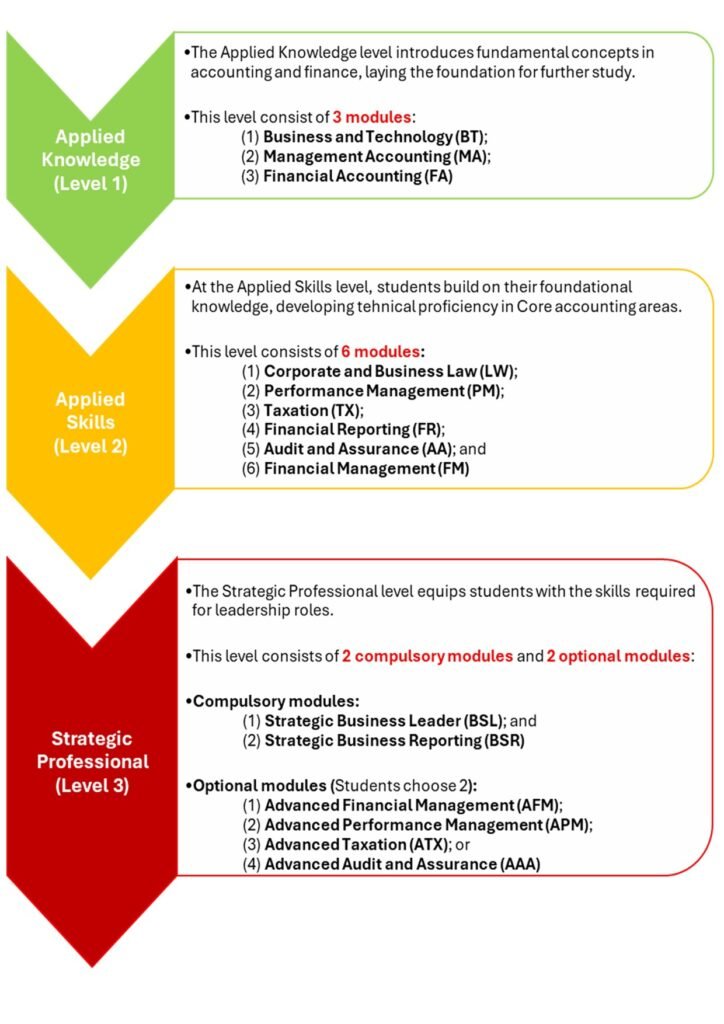 - Students must take the Ethical and Professional Skills module and gain professional experience by spending 36 months in an accounting or finance-related role.